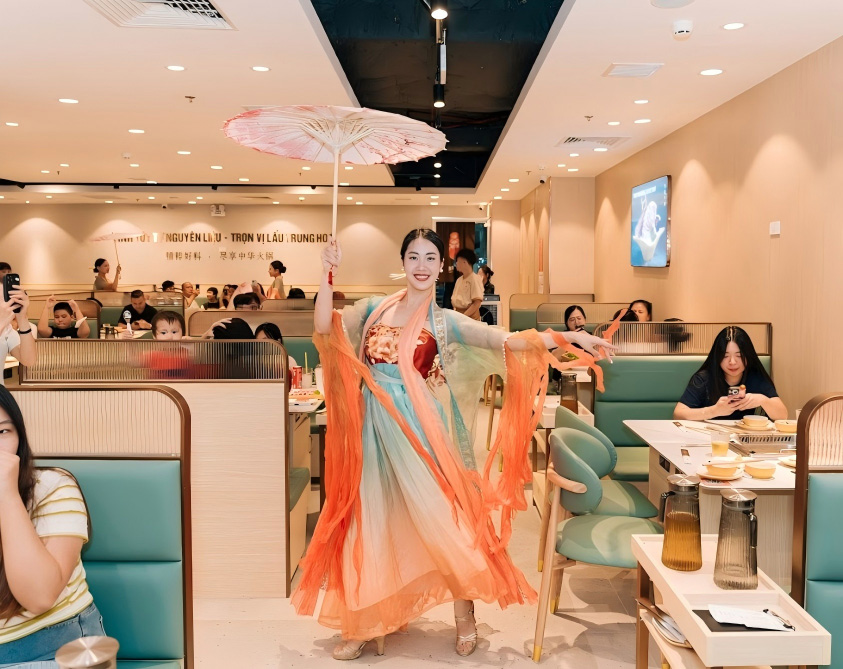 在开业当天,餐厅举办了多项活动,为顾客营造了热闹欢快的氛围,包括舞狮表演、越南风情的莲花舞表演、剪彩仪式等。